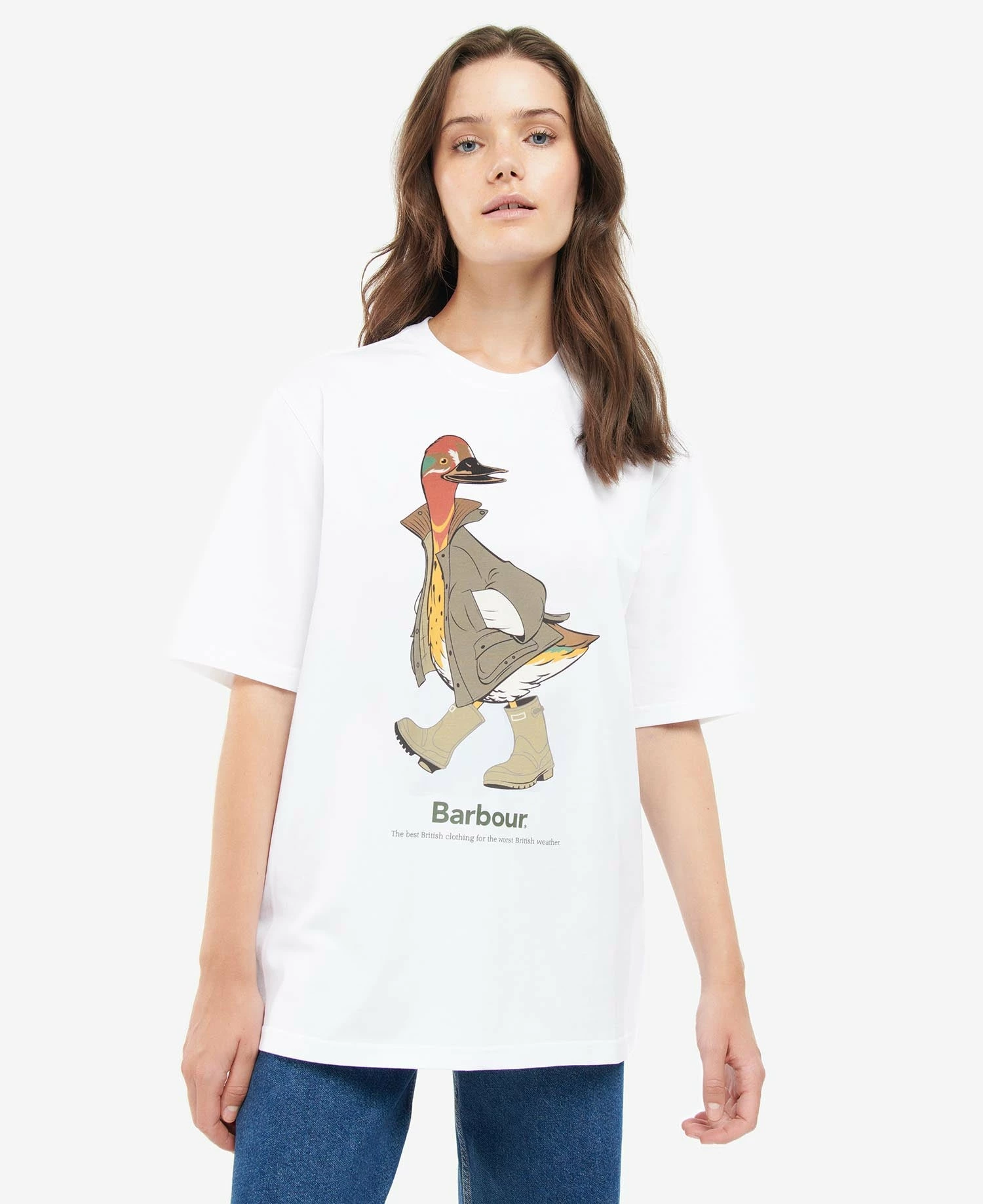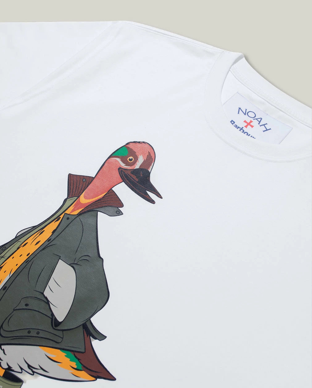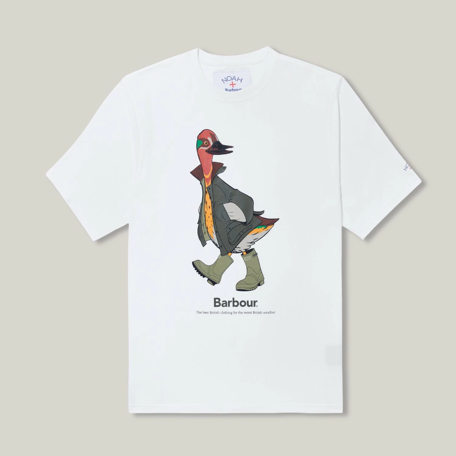 The Barbour x NOAH Duck Crew Sweatshirt boasts a playful character to the chest featuring a Barbour jacket and wellingtons. A fun take on everyday styling, this sweatshirt showcases a Barbour slogan to the front and is crafted from 100% cotton for a soft and comfortable wardrobe addition.