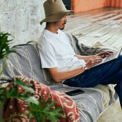 The Cotton Pile Blanket is a versatile Large cotton beach towel. It can also be used as a throw, blanket and rug and is has been dyed and woven for durability in both indoor and outdoor settings.