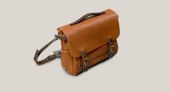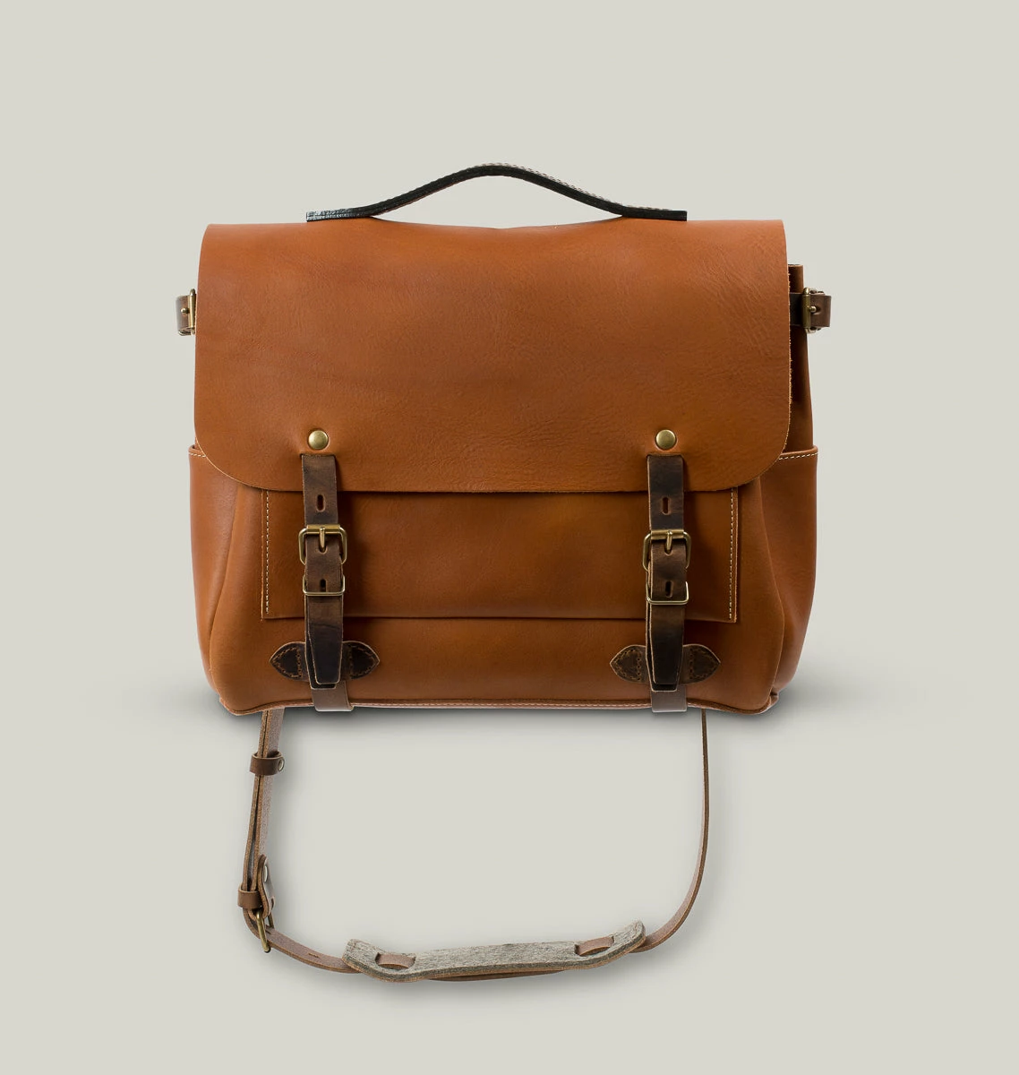 The Eclair Postman Bag from Bleu De Chauffe. Manufactured by hand using 100% organic leather this is a very practical size for everyday use and features enough pockets and details to keep you organised.