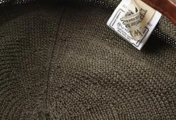 Summer weight version of their leather beret, modelled on the more military style beret, though in this weave and fabric is given a much softer and intriguing context. The base is finished with brown cowhide leather and includes lacing inside to ensure a good fit.
