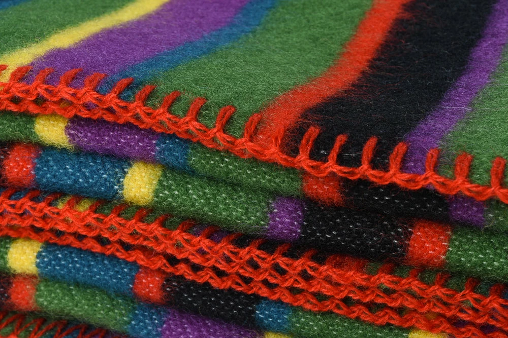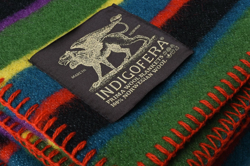 Thick, weighty blanket from Indigofera, inspired by the plains of Sierraville in California and the colours you might glimpse if you imbibe too much peyote out there.