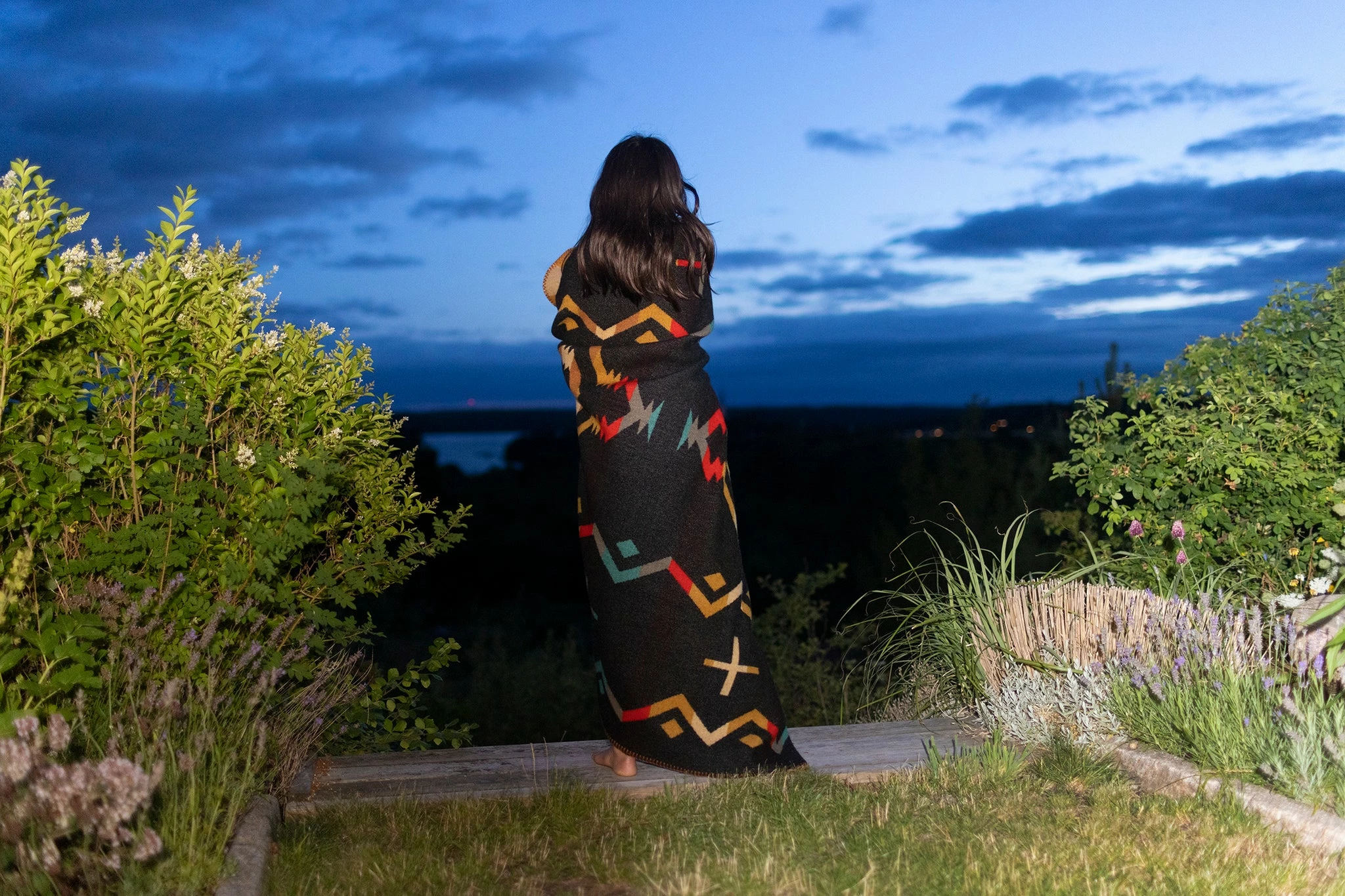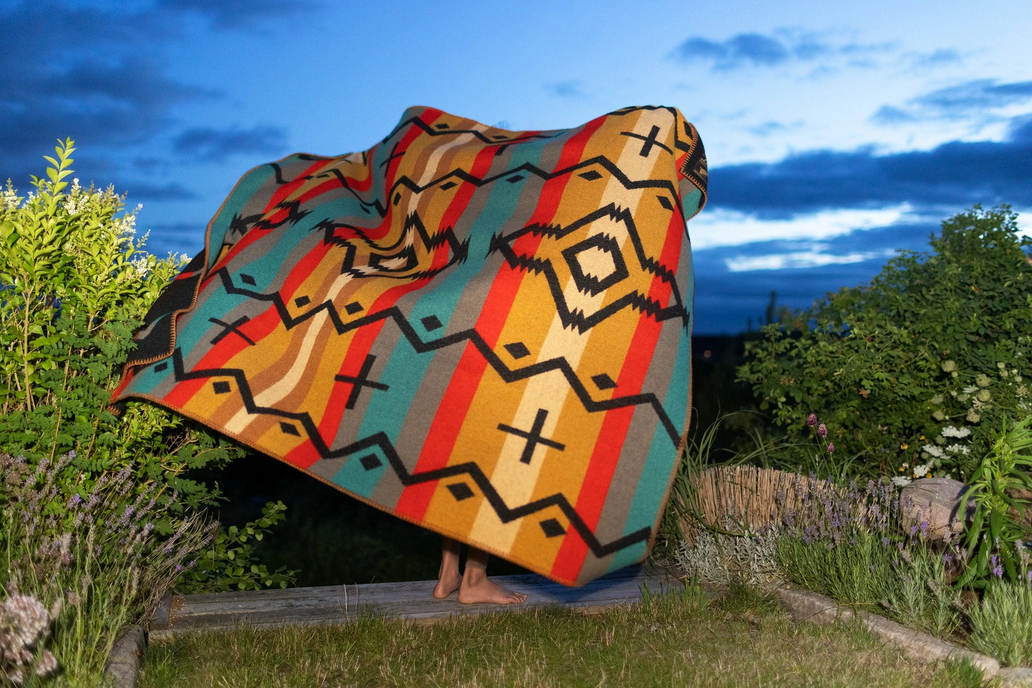 The second collaboration between Red Wing & Indigofera sees a more colourful blanket than before, inspired by ancient rugs and blankets from the early 1700’s in the Southern parts of Sweden. The technique used to make the blanket can be seen historically throughout Scandinavia, Asia, North and South America; traditionally always rich in colour, pattern & symbol. Kabusa is a nature preservation area in Skane where the earliest examples of these were found in Sweden, the name stemming from the Viking-rune word ‘Kabbis’, meaning ‘house.’