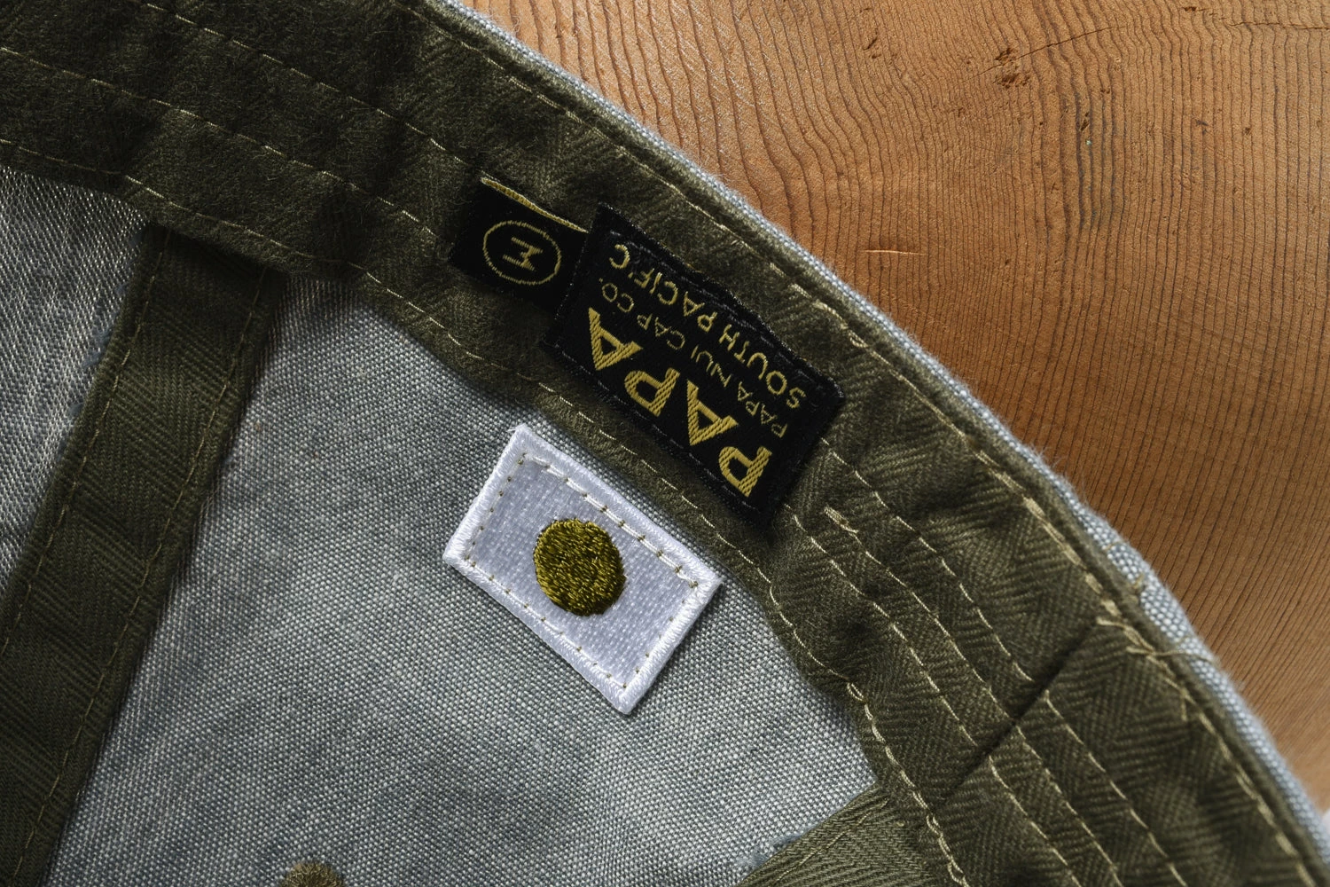 Sea Green Chambray toughness, battle tested by rugged Sea Bees across the Pacific, and designed to match the namesake Papa Shirt. N-3 USN styling with billiard green flip up and contrast OD stitching. Lightweight but tough!