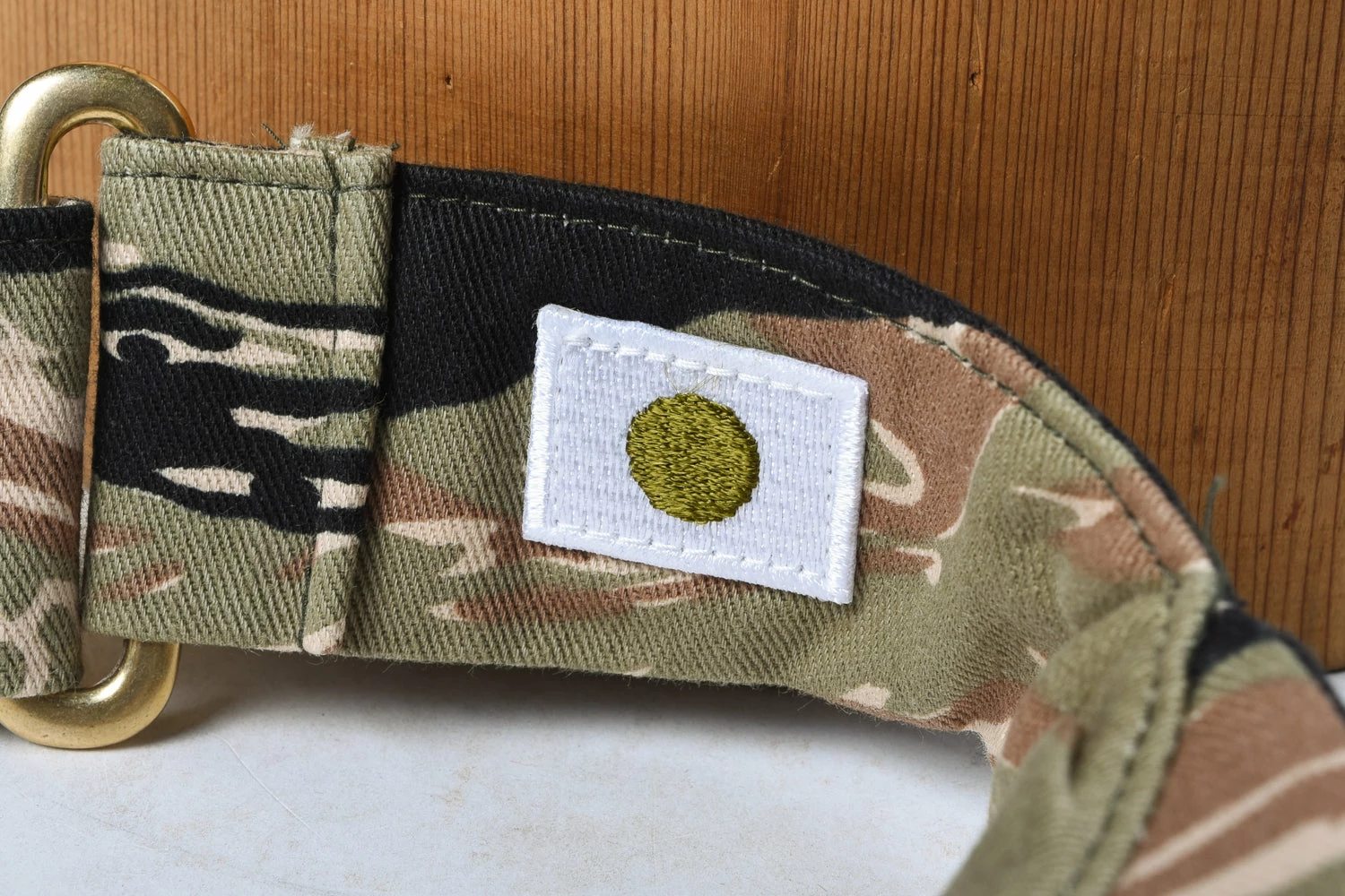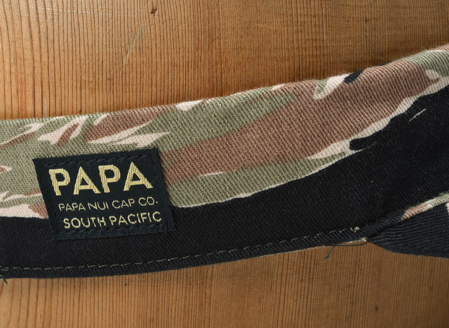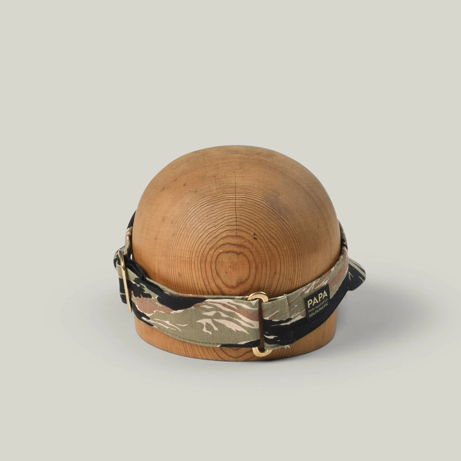 “Hey GI! You go RnR at Vung Tau? Better you buy visor!” So Mama-San says. She knows the Papa is No. 1 and making your debut on Vung Tau’s sand deserves the best Saigon style sun visor money can buy. All Tiger camo styled with brass hardware, adjustable sizing and perfect for the afternoon glass off down on the beach.