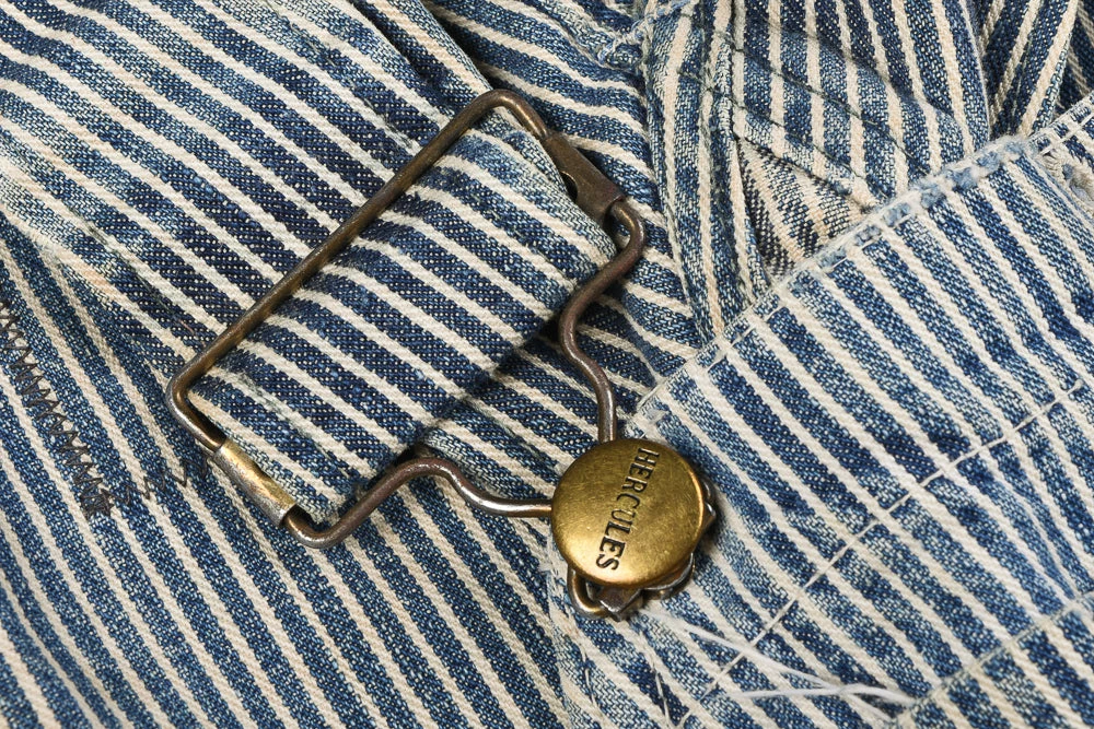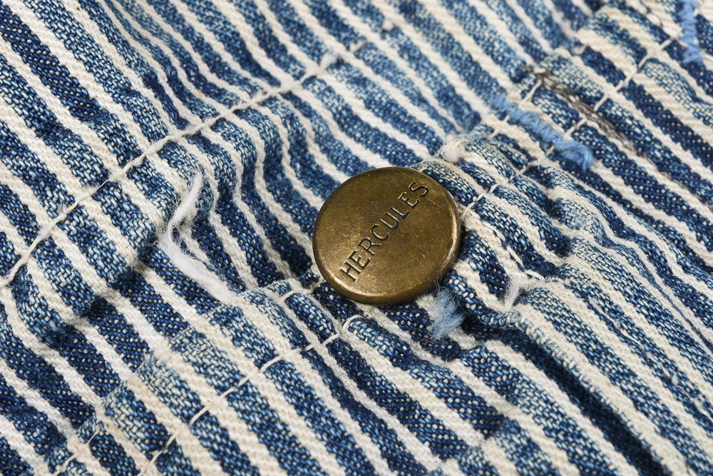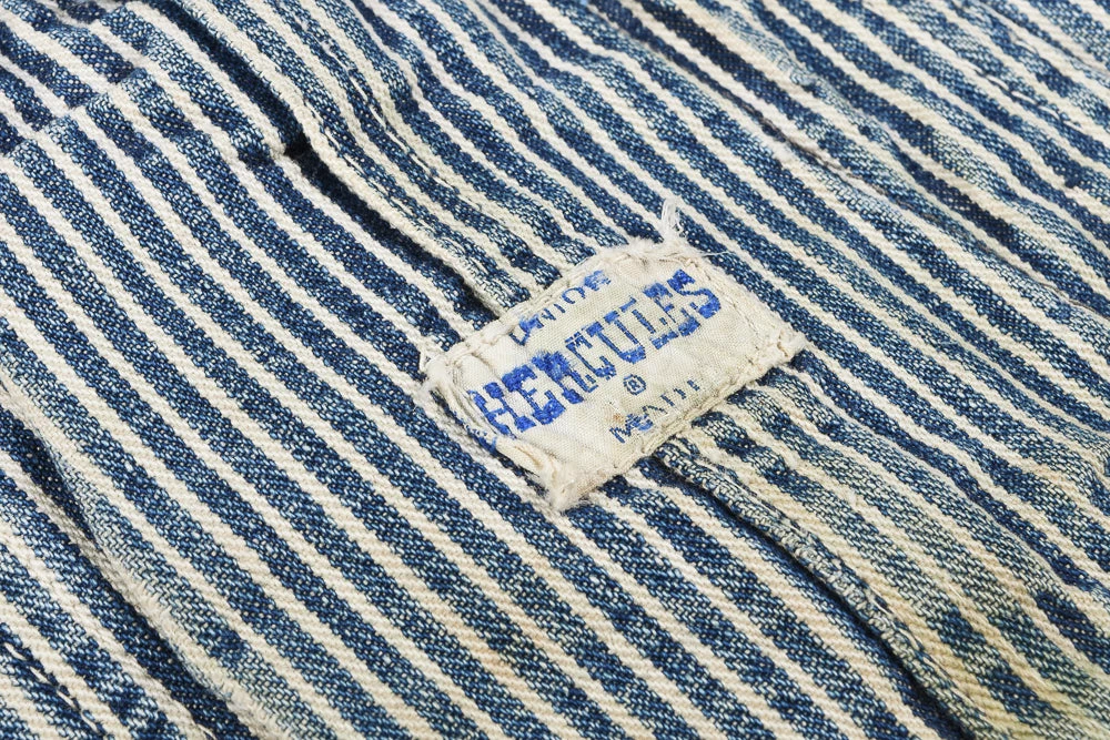 A rare find in these vintage Sears Hercules Brand Overalls. In beautiful aged condition with several original patchwork repairs. These could be one for the collection, but are still in very wearable condition – perhaps with a period correct patch added to the torn left knee. We haven’t been able to get an accurate date on these, but we estimate 1950’s.