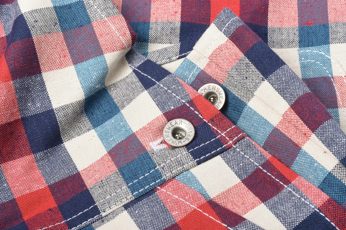 The W’menswear classic dungaree is back this summer in a hemp, kapok, cotton blend. This special fabric (yes, we get very excited about hemp!) is woven in small batch. The outside of the coverall is a solid denim, while the inside is hickory striped. You will also find double faced herringbone cuffs that are leopard printed on the outside, and tiger striped camouflage on the inside. Cuffed, this piece gives you so many options !